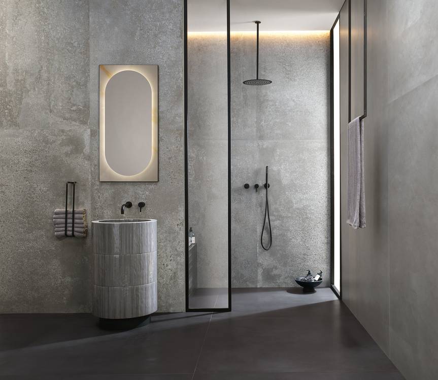 бетон, цветная плитка, камень, металл, 3D плитка